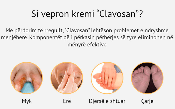 Clavosan falë tij, jo vetëm që do të shpëtoni nga kërpudhat, por gjithashtu do të rivendosni indet e dëmtuara.